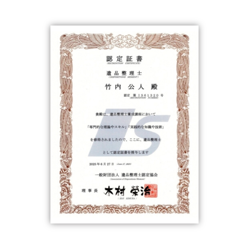 遺品整理士認定協会をはじめとする各種団体から正式に認定された優良事業所として、